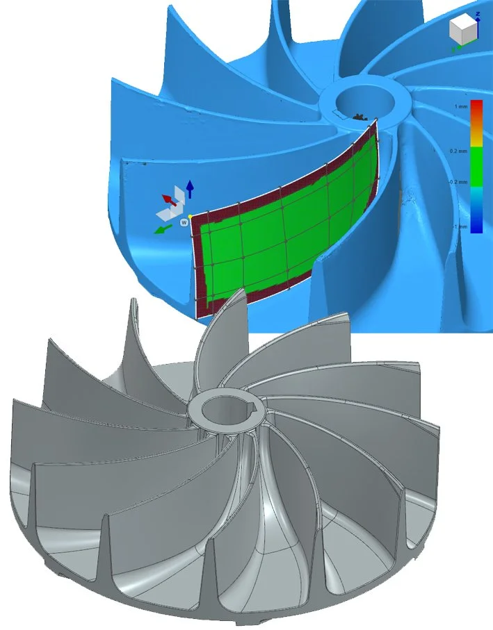 Работното колело изискваше по-сложна геометрична реконструкция заради профила на лопатките.
